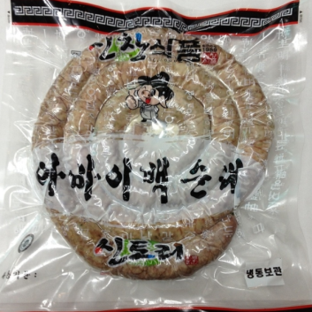 백순대 곱창볶음에 사용되는 아바이백순대 소개할려고 합니다. 참 담백하고 맛있지요. 그러기에 스테이크용 순대로도 사용되는 고급 순대입니다. 돼지고기,야채,두부,계란 등으로 제조되어 선지가 첨가하지 않아 색상이 밝으며 모듬순대로도 적절합니다. 여러모로 곱창볶음,스테이크,모듬용으로 쓰이고 있어요. 신창식품의 효자 순대입니다.