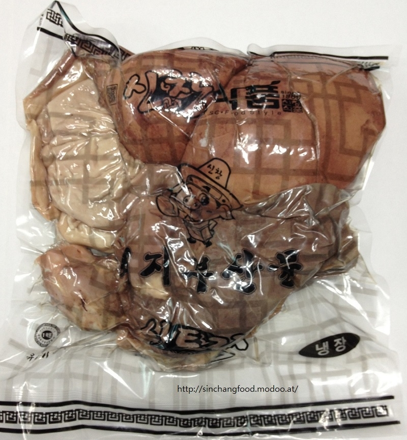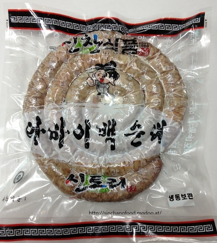 모든 순대에 순대창이 소창인데 반해 신창식품 순대공장 "아바이왕순대"는 순대창이 대창입니다. 일반 순대창보다 좀 두터워요 더 찌거나 삶으셔야 해요. 찹쌀과 각종야채,고기,두부,계란으로 제조된 고급순대입니다.