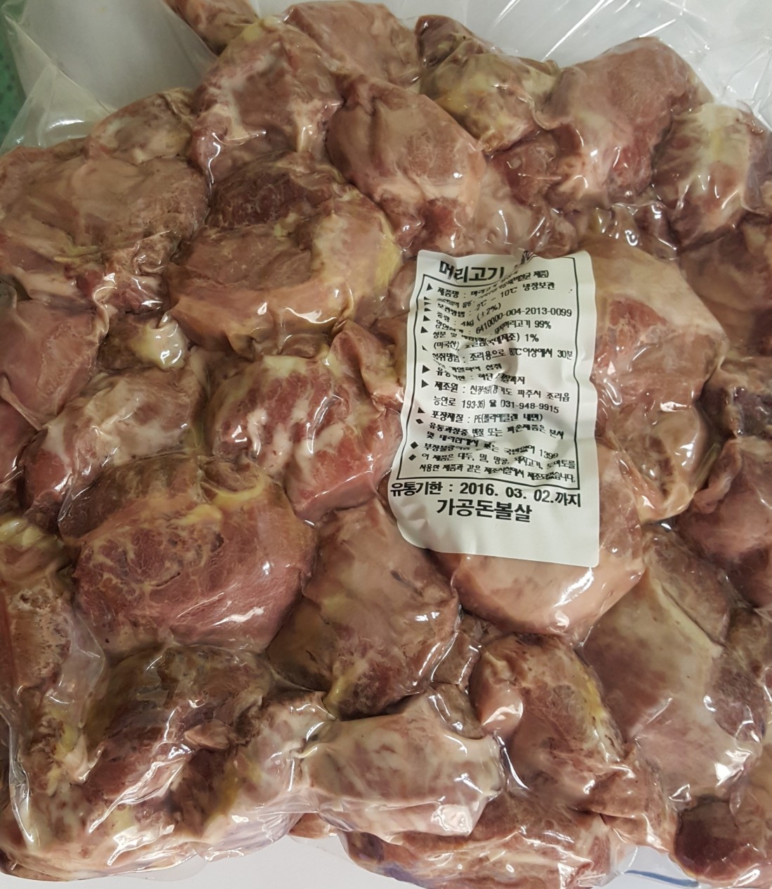 각 지역 맛집에서 많이 이용하시는 순대국 머리고기입니다. 도축장에서 당일 입고되어 가공하며 선분홍빛 나는 신선한 제품입니다.